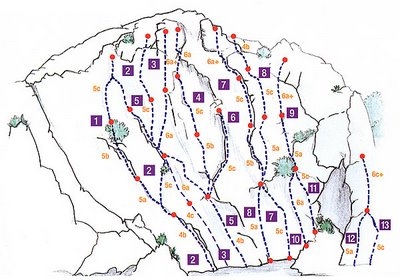 Sorprendente escuela, que a primera vista nos engañará, ya que la pared puede parecer no apta para la escalada disfrutona y en realidad encontraremos muy buena roca, rodeada de vegetación y vías de varios largos (hasta 120 m.) que van mejorando conforme vamos ganando altura.
