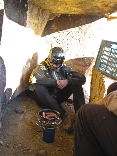 • Un bocadito liofilizado - El grupo de pro prepara un piscolabis ligero antes de seguir apretando