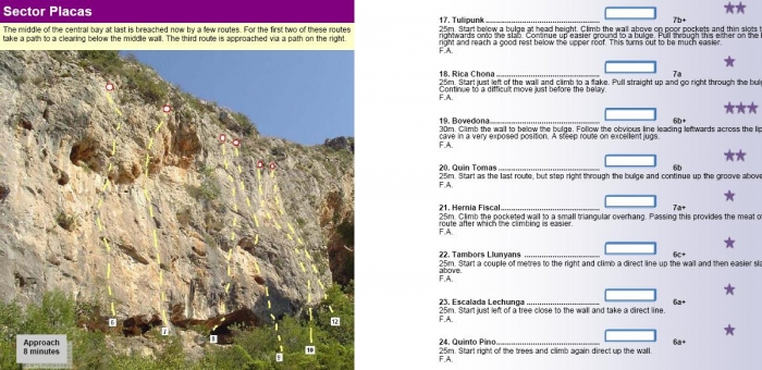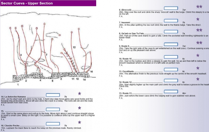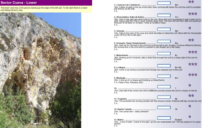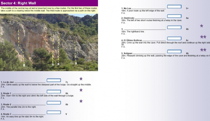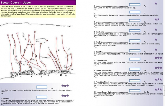 Contundente desplome con pocas vías (de grado mínimo 6a+/6b), en adelante.