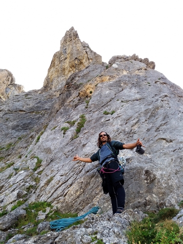Una marcada aguja cuya pared principal está orientada al Oeste. Su cima forma una aérea cresta.