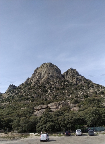 Desde el aparcamiento del Hostal del Cancho del Águila, en la salida 57 de la A-1, sale una senda señalizada en dirección al pico