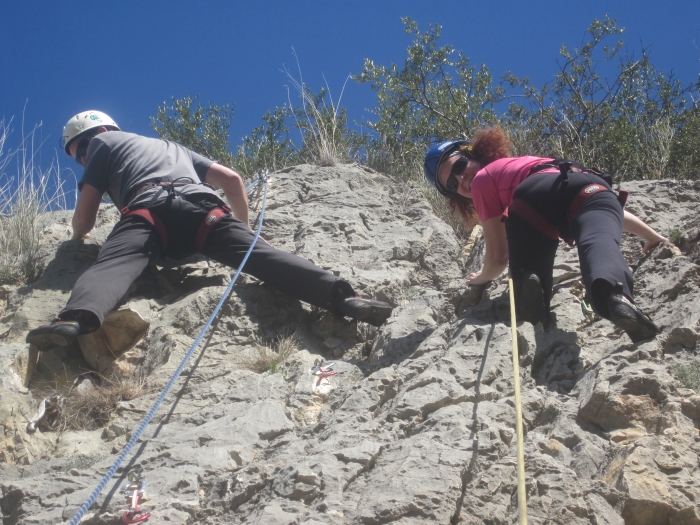 • (L1) Primer dia, primera reunión - Ese Goooon, en su primer día de escalada y ya colgado de una reunión. Curtiendo desde el primer momento.