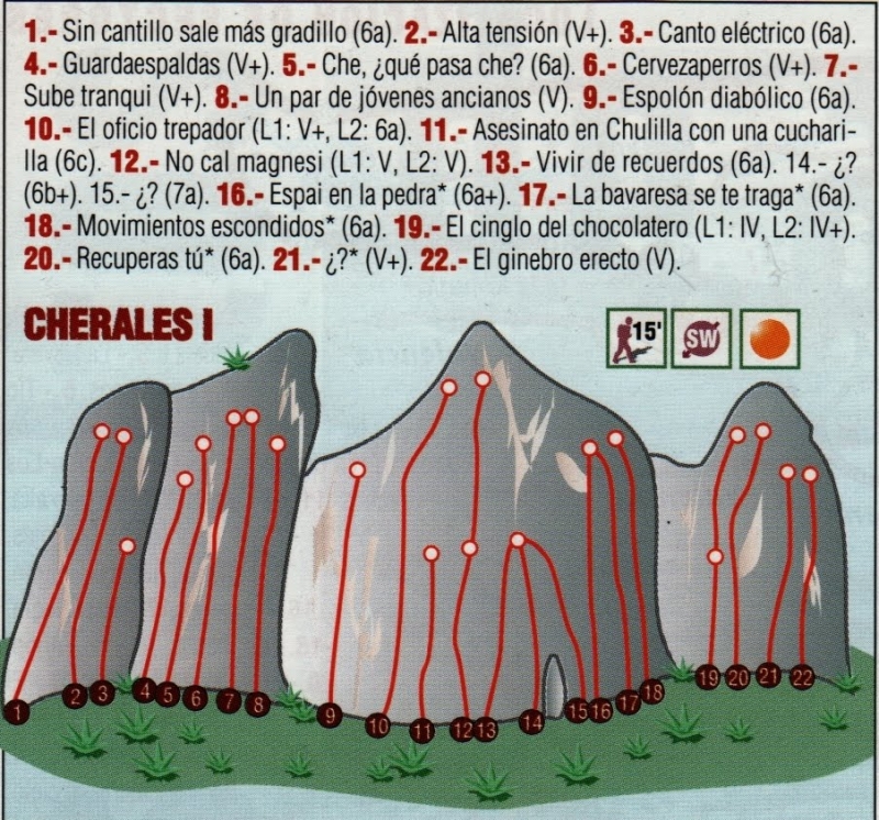Uno de los sectores con abundancia de vías fáciles de Chulilla, orientado al Suroeste, recomendado para otoño e invierno. Es un buen sector para iniciación. El equipamiento es excelente.
