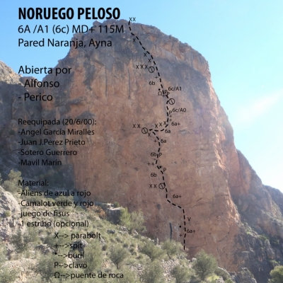 mítica vía de artifical expuesto, desplome y roca de baja calidad. En el año 2000 recibió una reequipación que baja el grado de artificial y proteje las zonas más expuestas. Sin forzar los pasos en libre el grado quedaría en un más asequible 6a/A1