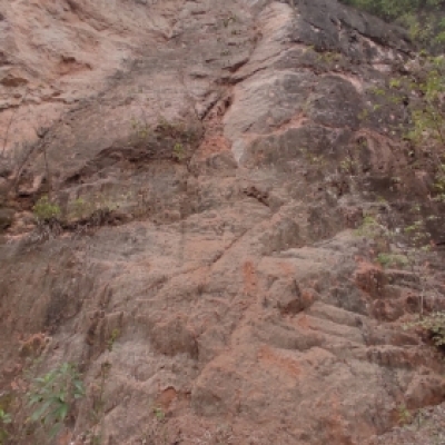 Primera vía del sector (NE-SW), la línea de escalada se encuentra a la derecha de una grieta subvertical irregular. El inicio es un trepadero un poco incómodo por el material granular suelto a pie de vía. La primera chapa se encuentra casi al final del primer estrato portante de la zona. Se recomienda seguir la verticalidad de la línea definida por las chapas.