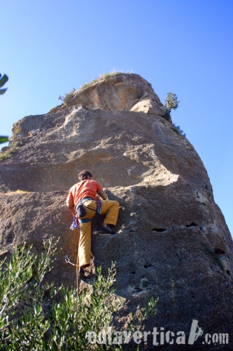 Vía que aunque parece muy sencilla, tiene un par de pasos. El primero, para salir de la repisa, de confianza y el segundo, para chapar, de desplome.