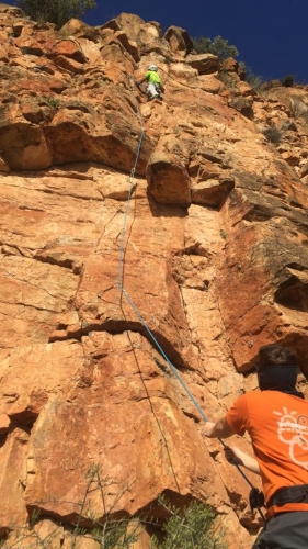 Punto rojo | 2 | Los pasos iniciales hasta montarte en el primer saliente son una verdadera pasada. Tambien hay un paso curioso al final. |