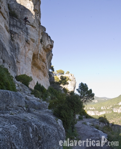 Paso de salida muy duro. La vía discurre en diagonal hacía la derecha. Esta vía merece la pena.